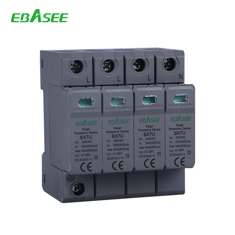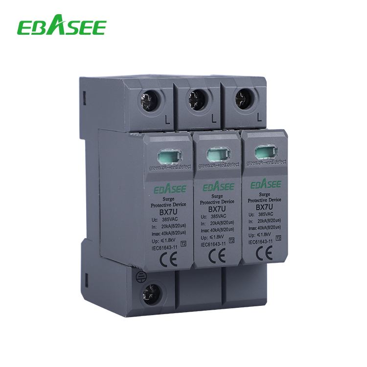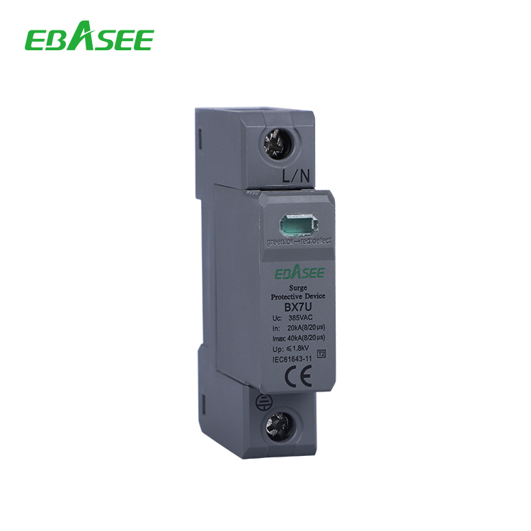 BX7U Series Surge protector device(hereinafter referred to as SPD) is used for power supply systems such as IT, TT, TN-C, TN-S, TN-CS, etc. for low-voltage AC distribution systems, for indirect lightning and direct lightning or other A surge of transient overvoltage is protected. The SPD has a common mode(MC) and differential mode(MD) protection. The SPD complies with GB/T18802.1/IEC61643-II.