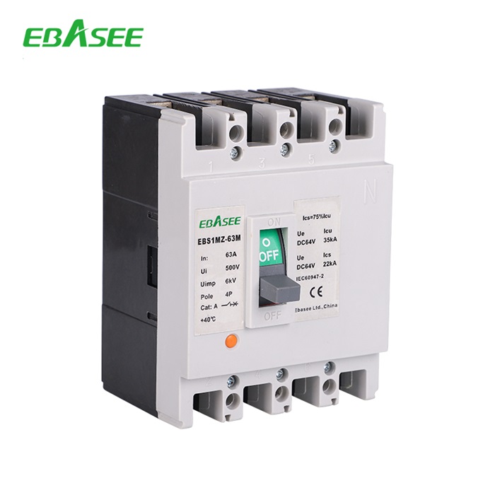 EBS1MZ series DC moulded case circuit breaker is developed by advanced design and manufac- turing technology, suitable for rated voltage is DC250V, DC500V, DC750V and DC 1000V, rated current up to 250A, the circuit breaker have function of short circuit, overload and under-voltage protection to protect circuit and power equipment against damage. The breaker are comply with the IEC60947-1 and IEC60947-2.