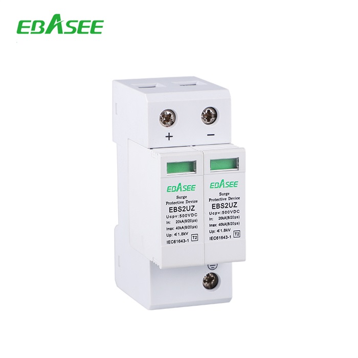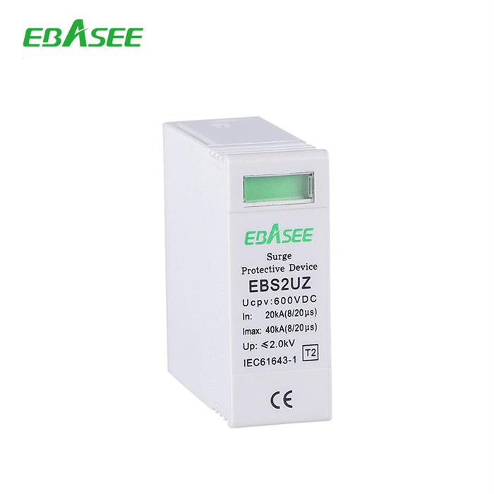 EBS2UZ DC surge arrester is to be installed in 1000V DC system for PV application and other DC application.The product is to installed in lightning protection zone between LPZ1 to LPZ2 for PV system DC side and other DC distribution box. It will provide surge protection against lighting strike and other surge current.