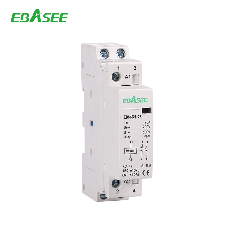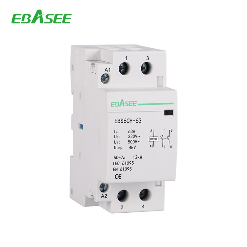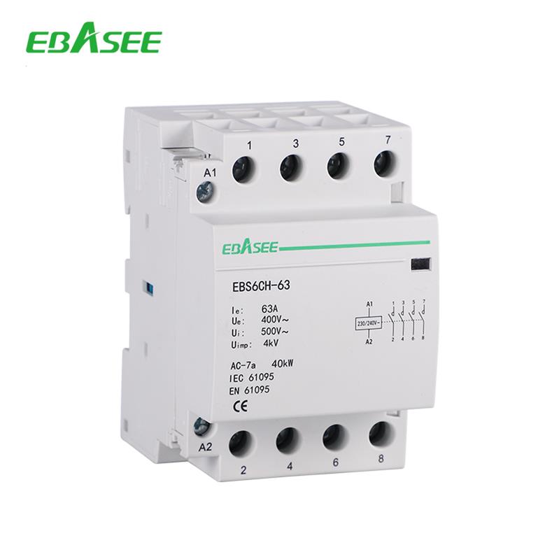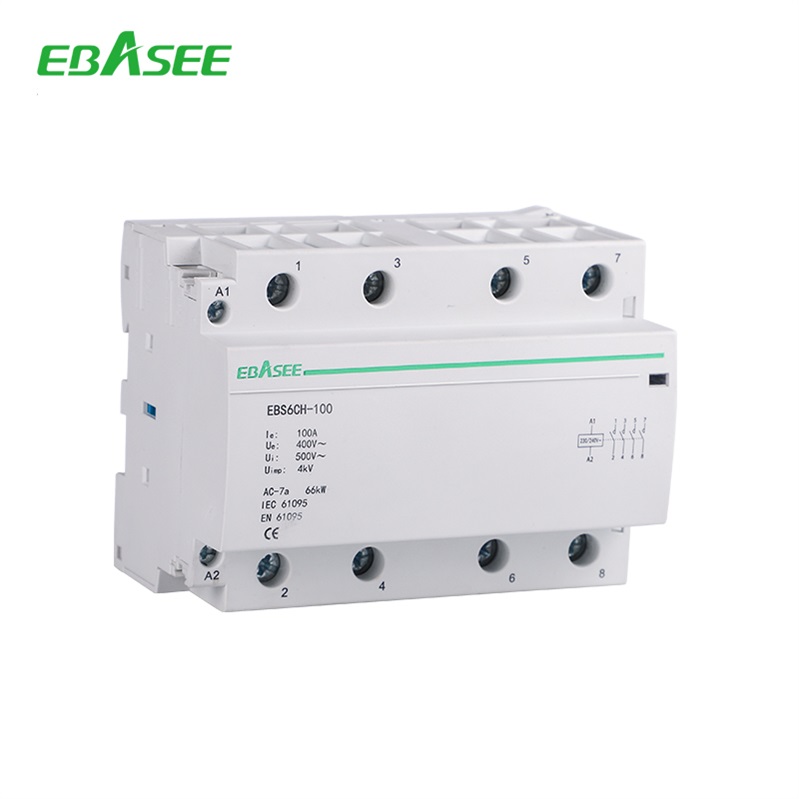 EBS6CH series mini contactor mainly apply to the condition of 50Hz ( or 60Hz) , 400V or less rated operation voltage, 100A or less rated current under AC-7a application, or, 32A or less rated current under AC-7b application, 6kA or less rated breaking current, which is to control the household appliances, low or micro inductive reactance load, or household motor load as well. Its main performance indices comply with IEC 61095.