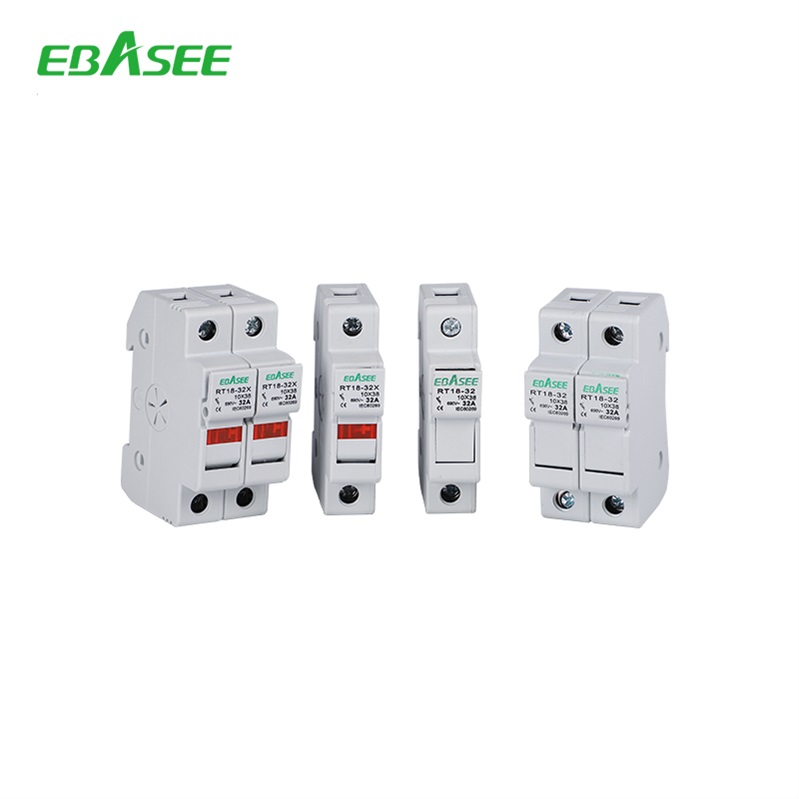 These fuse holders are supporters for fuses with size up to 22*58mm. They are capable of working under hear cased by rated current and expected short impacting current up to 100kA. It can also function as a fuse disconnecting switch by multi-phase combination. There are two in/out lines at the RT18N fuse base, providing a power cut function. The RT18L type has a safety lock to lock the fuse carrier when disconnected to avoid wrong operation; it can also be equipped with an indicator, which goes on when the fuse links breaks. Rated insulate voltage up to 690V; Working frequency 50Hz AC; Conventional free air thermal current up to 125A; Compliant with GB13539.1, GB13539, GB13539.6, GB14048.3 and IEC60269-1, IEC60269-2, IEC60269-2-1, IEC947-3.